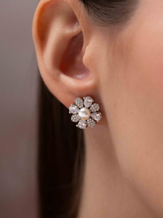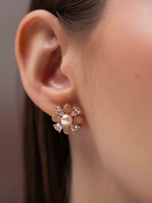 The nooriya earrings feature a charming flower-shaped stud design with a luminous pearl at the...