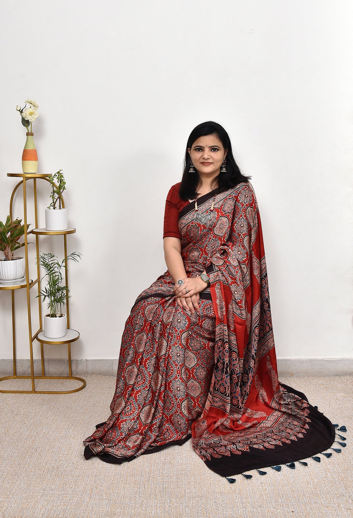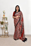 AJRAKH MAROON MODAL SILK DIGITAL PRINTED SAREE