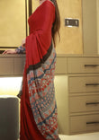 Ajrakh Print Premium Silk fabric Saree With very soft in texture.. Light weight Silk Fabric with a rich glaze .