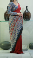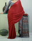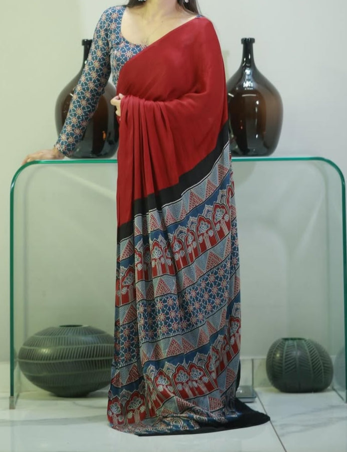Ajrakh Digital Print Border with Ajrakh Rich Pallu With Contrast Blouse