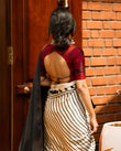 BEAUTIFULL CREAM STRIPTED SAREE WITH RED BINDI PALLU.