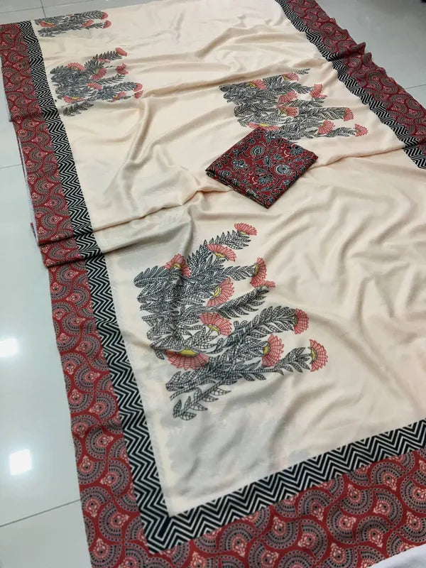 Please note this product is handcrafted by Indian artisans with environment friendly dyes. There might be slight irregularities and unevenness in color and prints which make it an exquisite piece, proclaiming it to be completely handmade. Saree may bleed in initial washes |