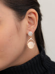 Shakira Earrings are a masterpiece of elegance and sophistication. Crafted in luxurious rose gold, these dazzling dangle earrings feature a diamond-studded top, adding a touch of luxury and glamour.
