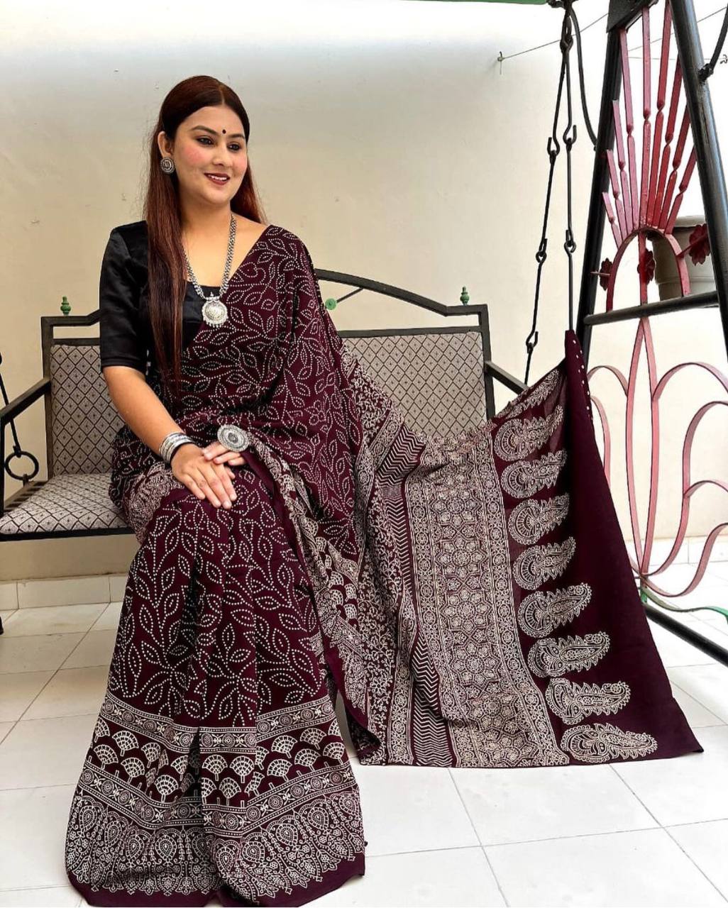 Please note this product is handcrafted by Indian artisans with environment friendly dyes. There might be slight irregularities and unevenness in color and prints which make it an exquisite piece, proclaiming it to be completely handmade. Saree may bleed in initial washes