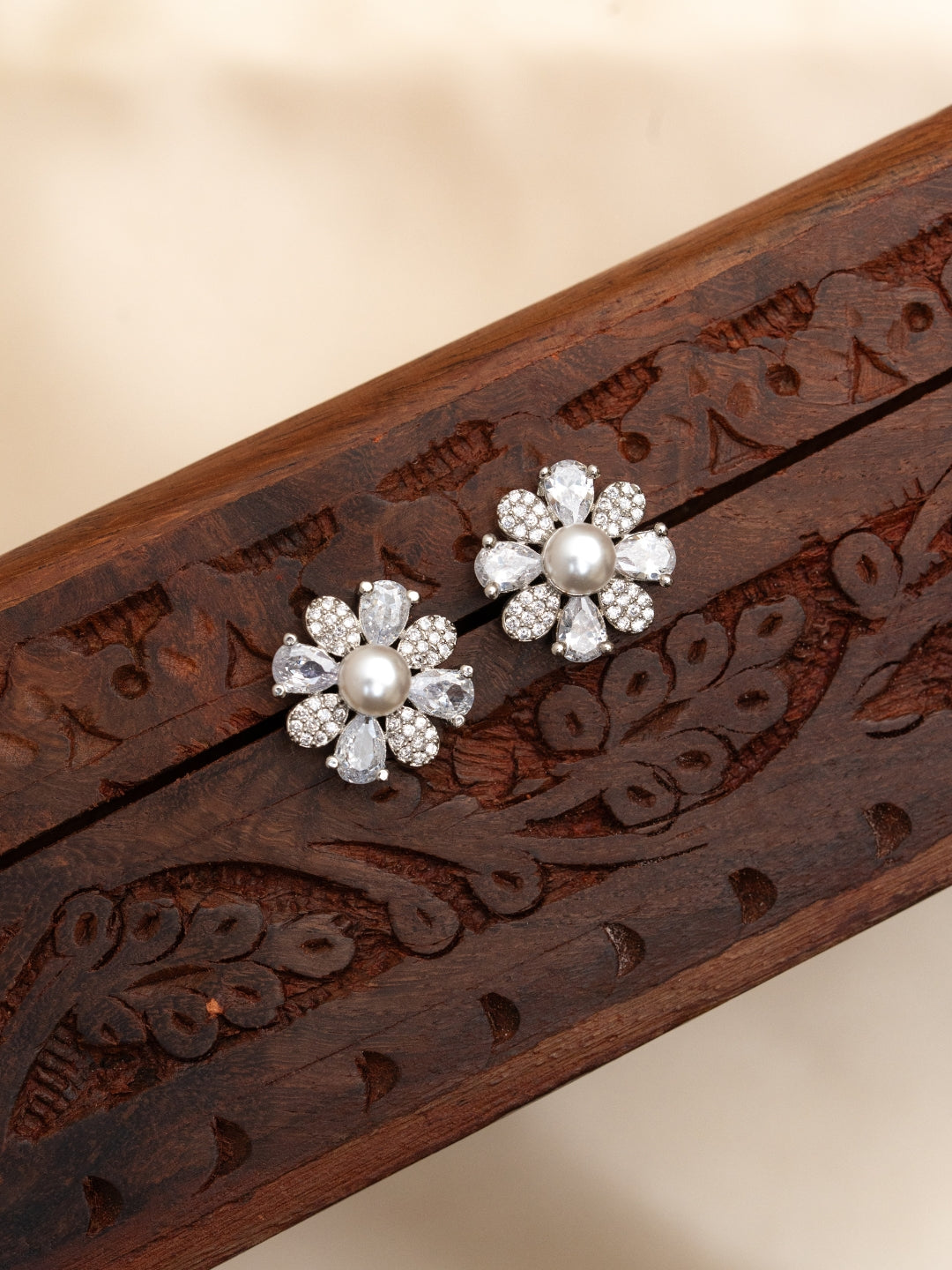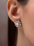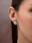 The nooriya earrings feature a charming flower-shaped stud design with a luminous pearl at the center. Plated in 18k gold, these earrings blend classic elegance with a soft, feminine touch—perfect for everyday wear or special occasions.