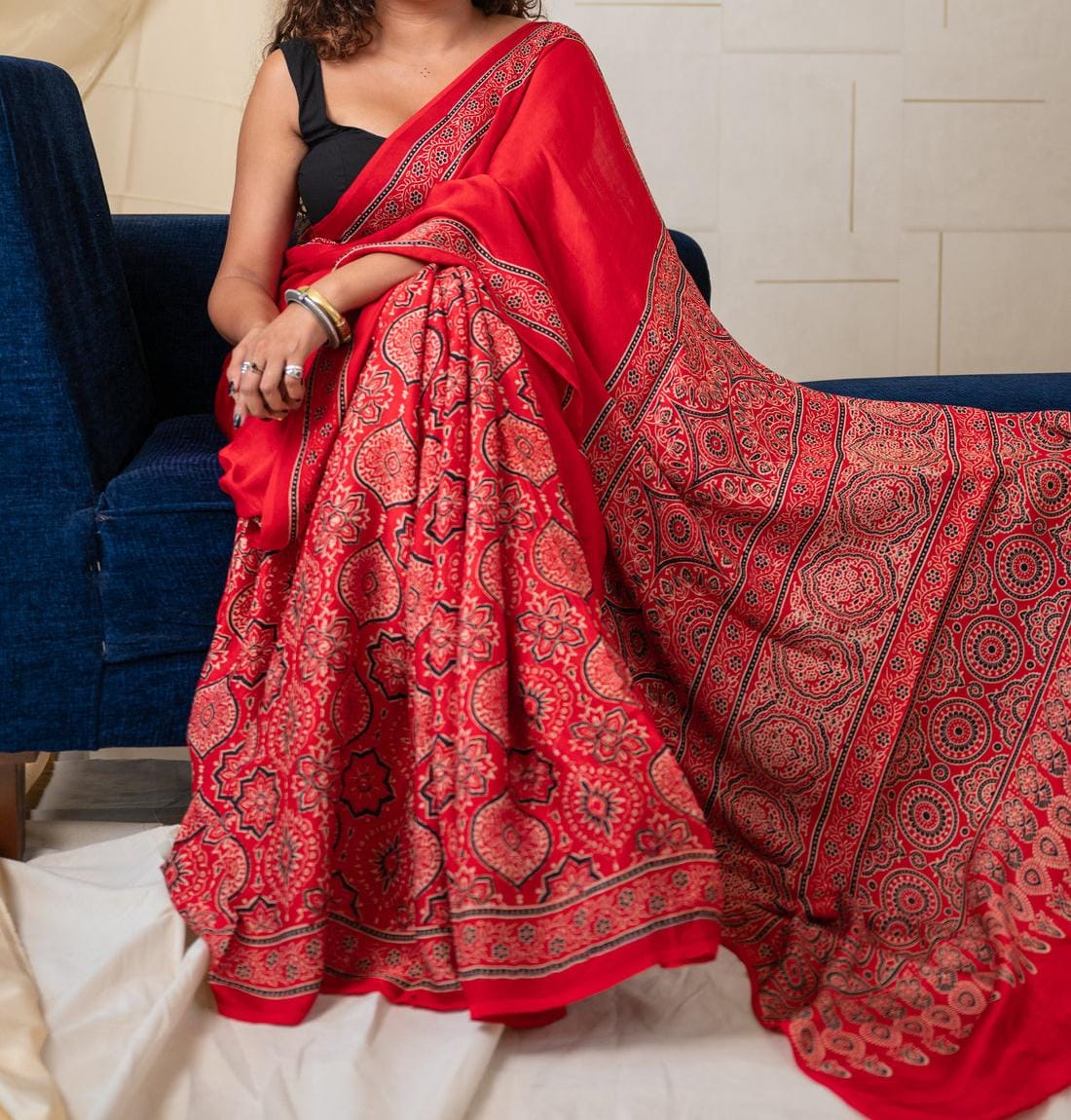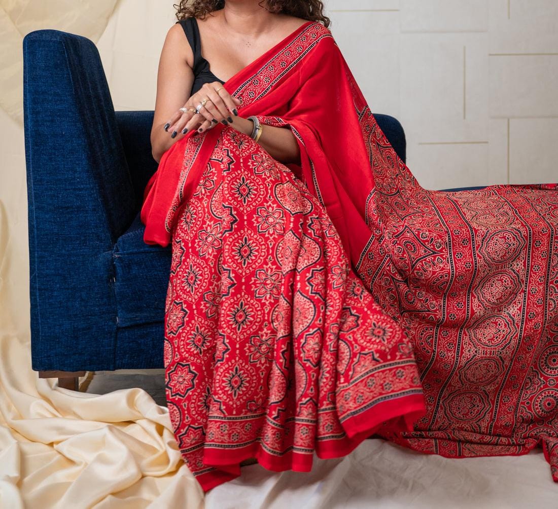 RED COLOR AJRAKH SAREE