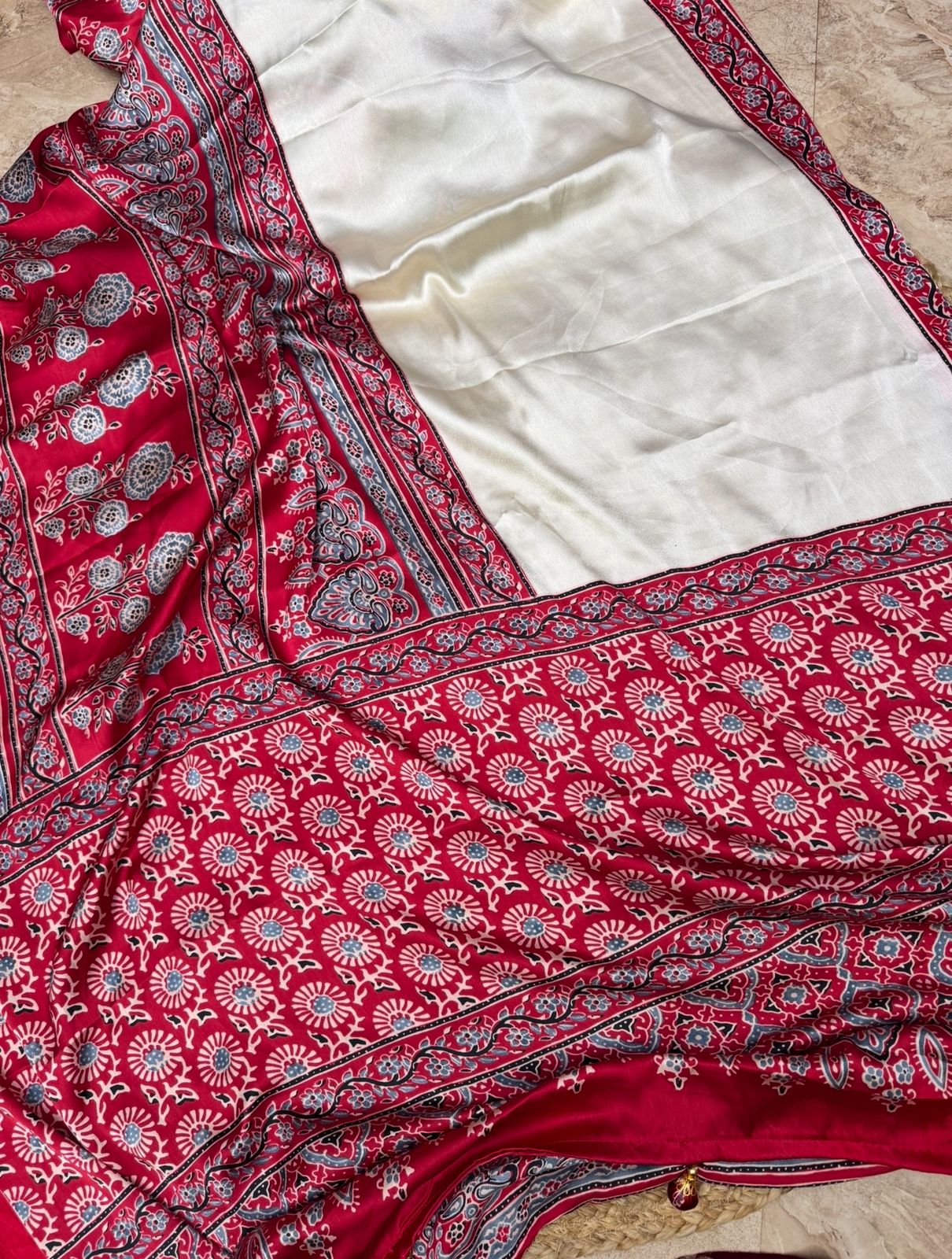 Please note this product is handcrafted by Indian artisans with environment friendly dyes. There might be slight irregularities and unevenness in color and prints which make it an exquisite piece, proclaiming it to be completely handmade. Saree may bleed in initial washes |
